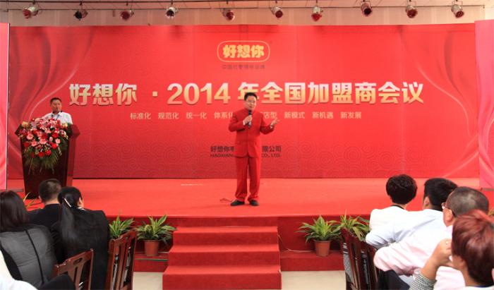 2014年10月10日,一年一度的全国加盟商会议在好想你中华枣文化博览中心三楼隆重召开,来自全国的259位优秀加盟商、省区经理、优秀店长聚集一堂、共商公司发展大计。公司董事长石聚彬、总经理苗国军、销售中心总经理张艳菊、行政中心总经理石聚领、财务中心总经理张宗成、生产中心总经理卢国杰、企管人资总经理刘汉超等出席会议,会议由华南区总监张永明主持,本次会议的主题为“标准化、规范化、统一化、体系化 新店型、新模式、新机遇、新发展”。