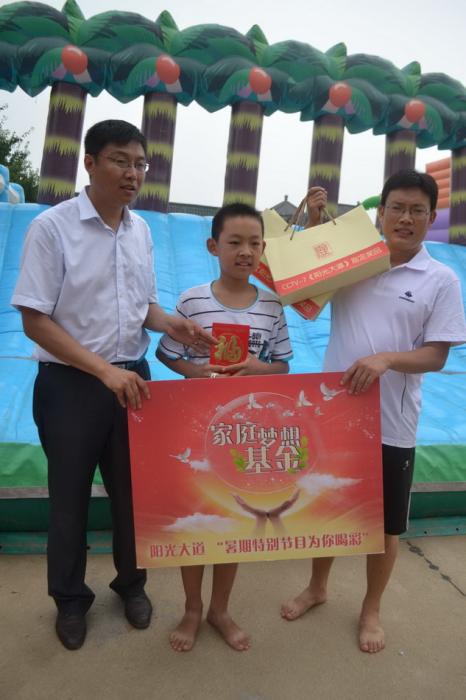 好想你股份有限公司华北大区经理武国峰为闯关成功的家庭颁发家庭梦想基金